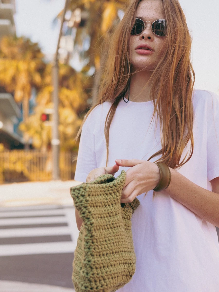 Liten veske hekles med enkel tråd og heklenål nr 5.