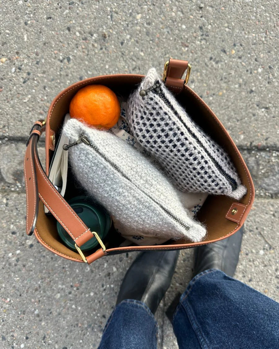 Marie Case strikkes i ett stykke fra bunnen og opp. Først strikkes bunnen i dobbelstrikk. Deretter plukkes masker opp langs alle sidene av bunnen, og pungens vegger strikkes i vevstrikk (på engelsk Garter Slip Stitch). Videre sys glidelåsen fast med nål og tråd, og til slutt sys fôr (på maskin eller for hånd) som monteres inn i pungen. Oppskriften inneholder også veiledning til å sy fôr.