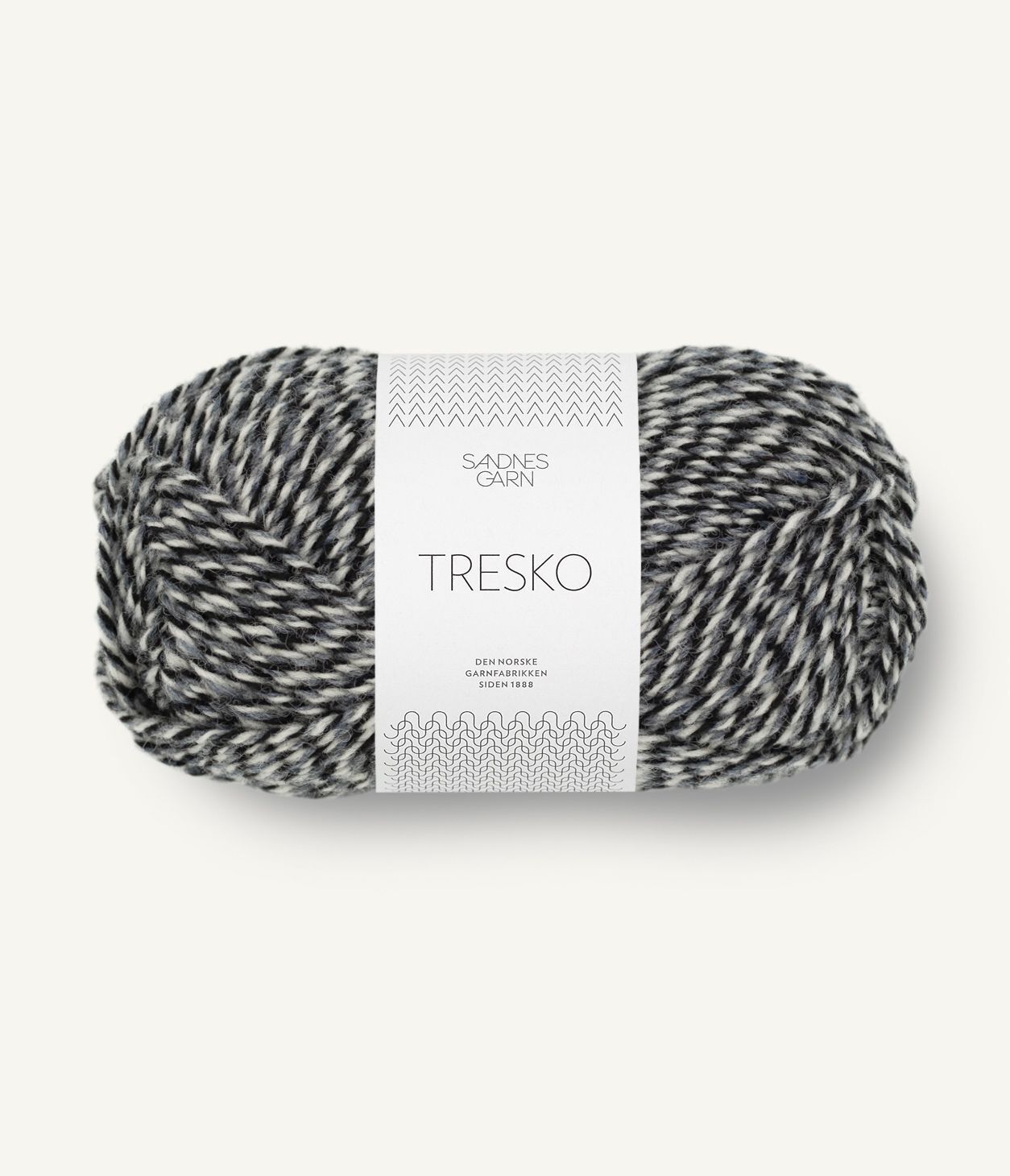 Tresko er et mykt, slitesterkt bruksgarn som er forsterket med nylon. Det egner seg derfor bra til sokker og tøfler som skal tåle litt bruk. Du finner oppskrift på strømper på innsiden av banderolen. Tresko er et kardegarn og ullen er 100% norsk.